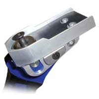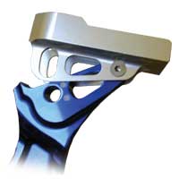 | CNC machined from solid 6082 aluminium to exacting tolerances. New for 2002 are the addition of nylon dowels, countersunk into the riser and standing slightly proud by 0.15mm to allow a perfect interference fit. |